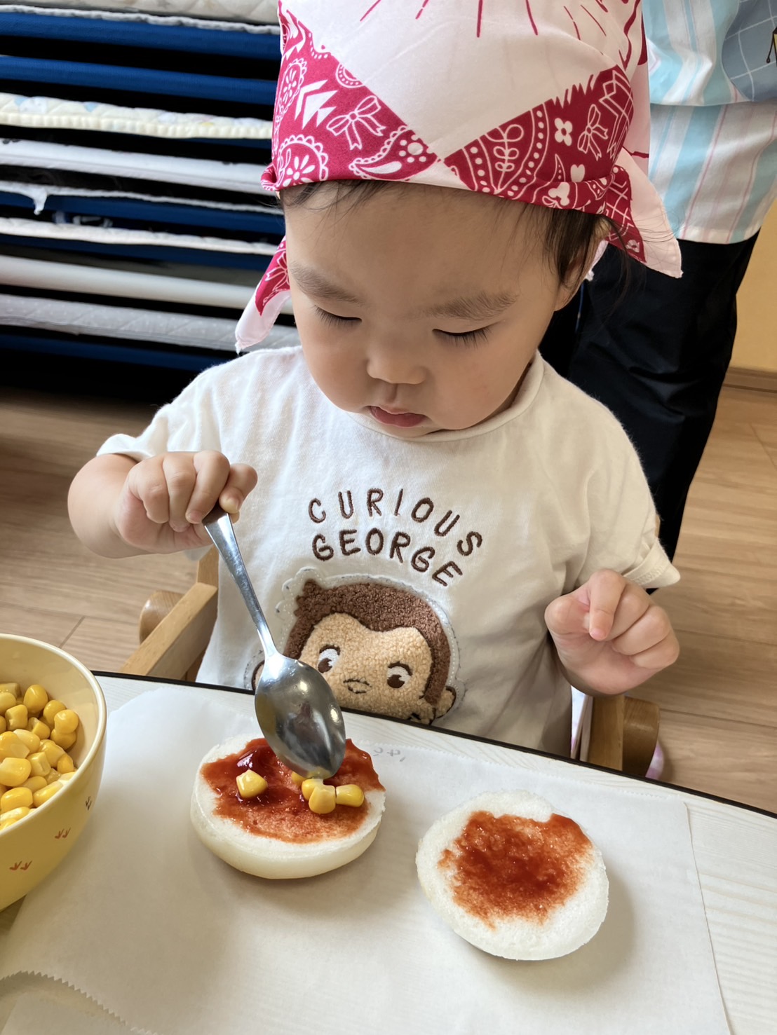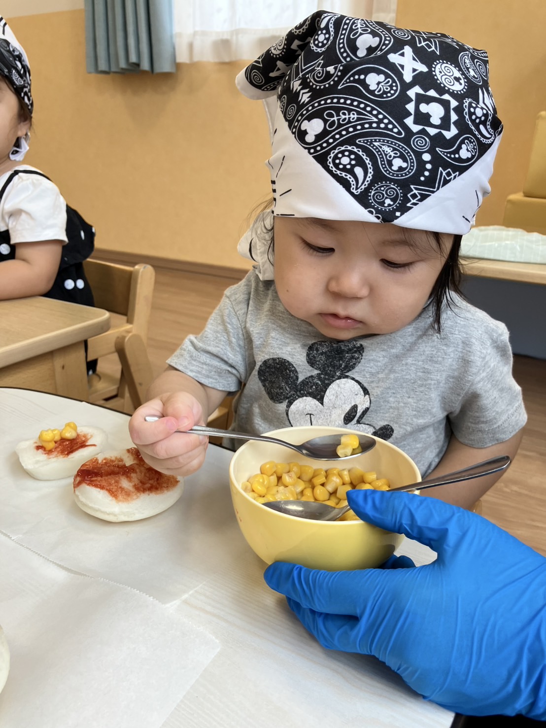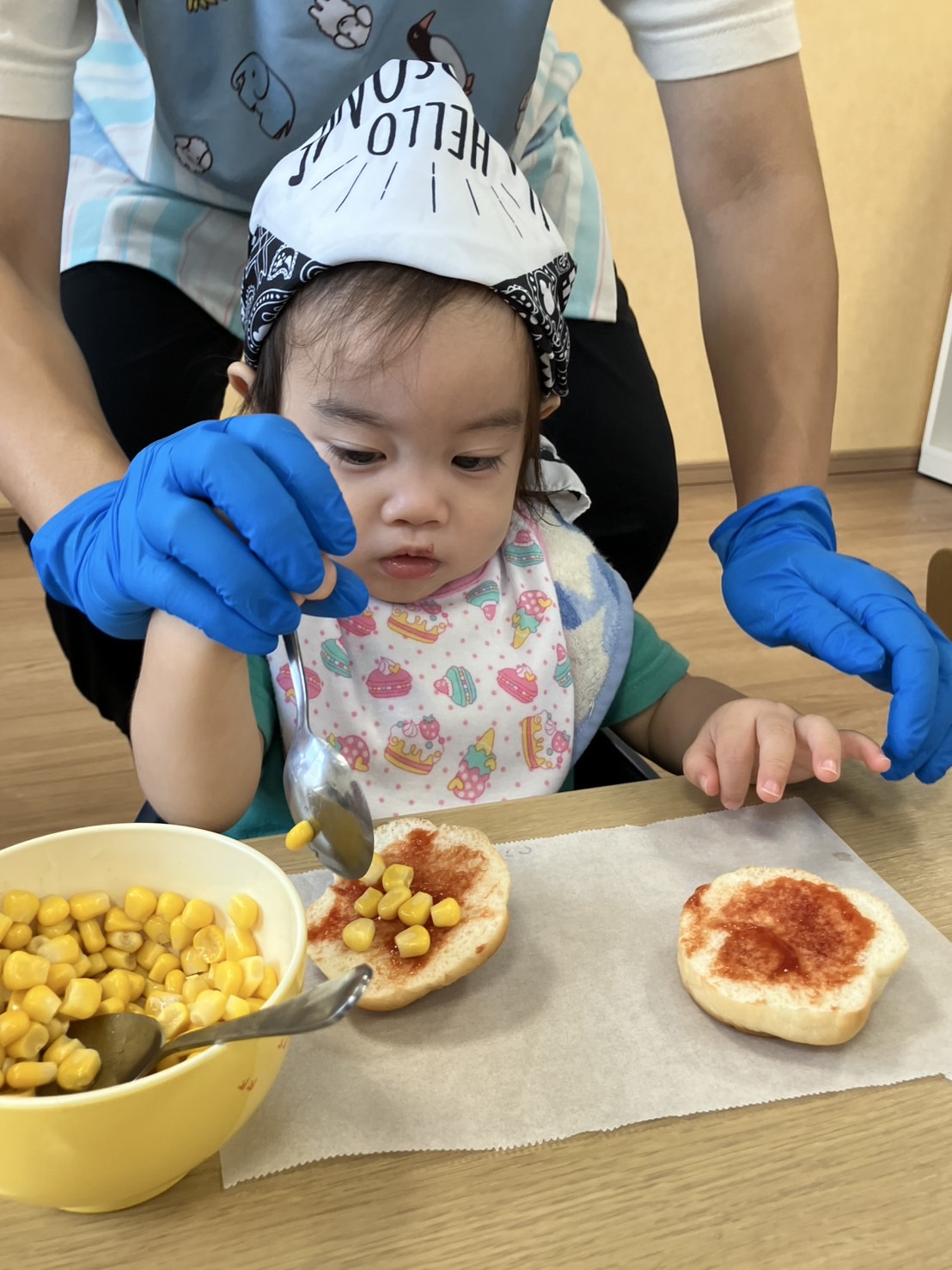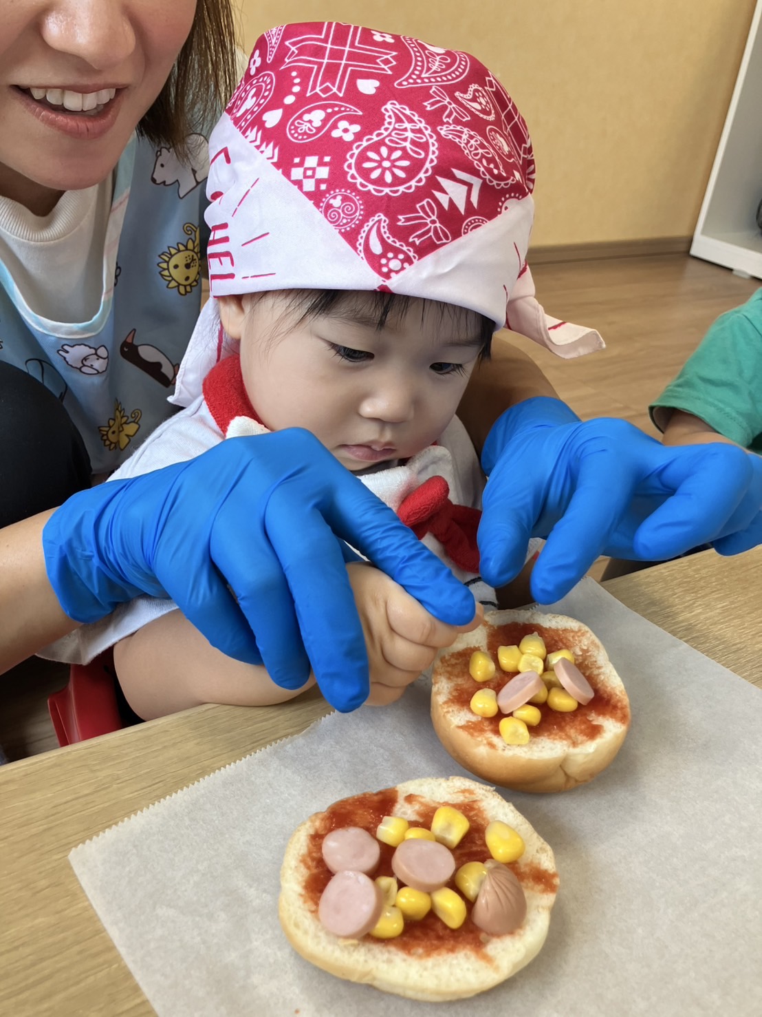 ひよこ組さんとうさぎ組さんは用意されている具材を自分の好きなだけトッピングをしました😊