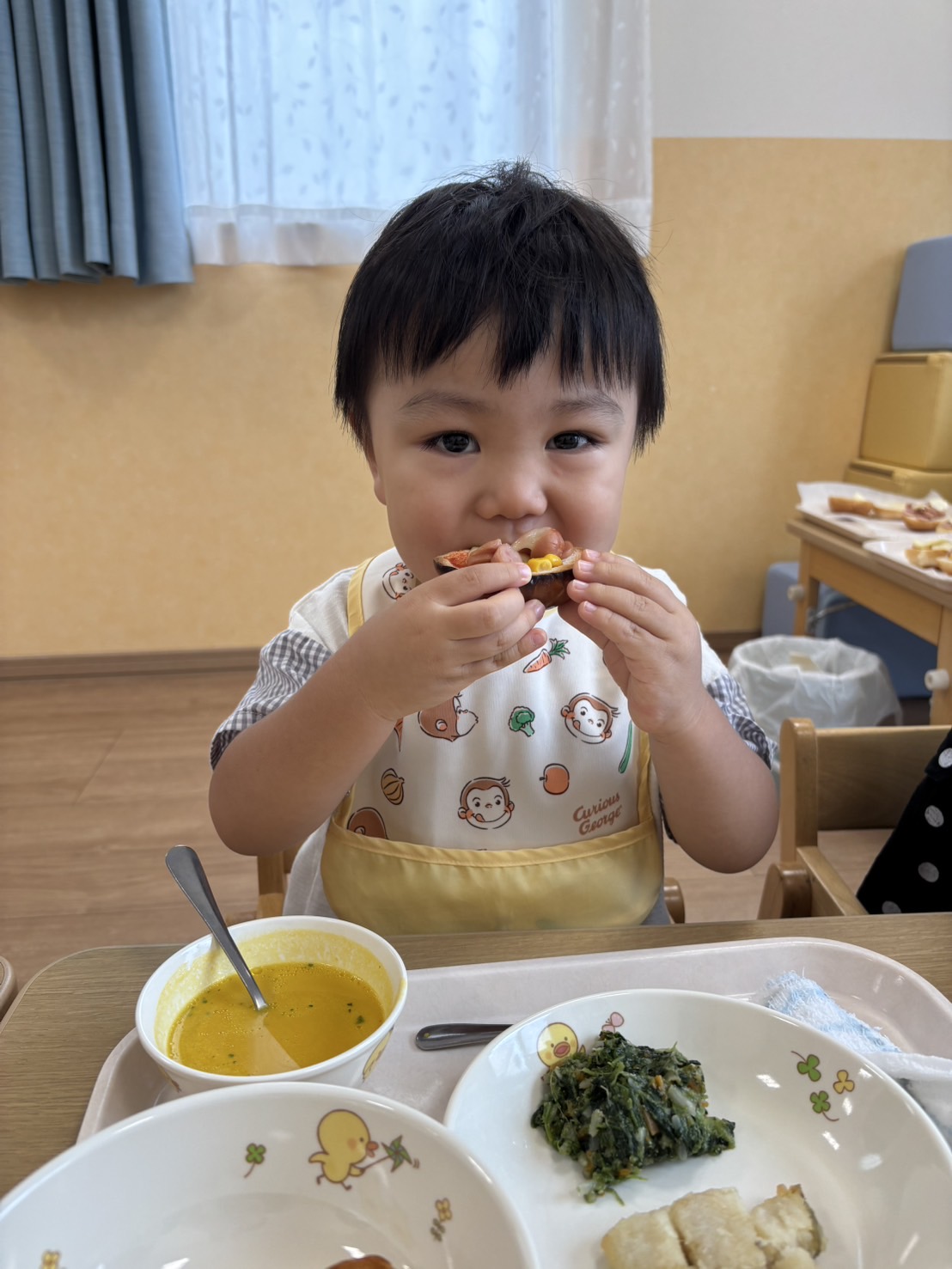ぞう組さんは“自分で食べられるピザ”を作ったのでいつも苦手な味があるとなかなか進まないお友だちもニコニコであっという間に完食していました✨